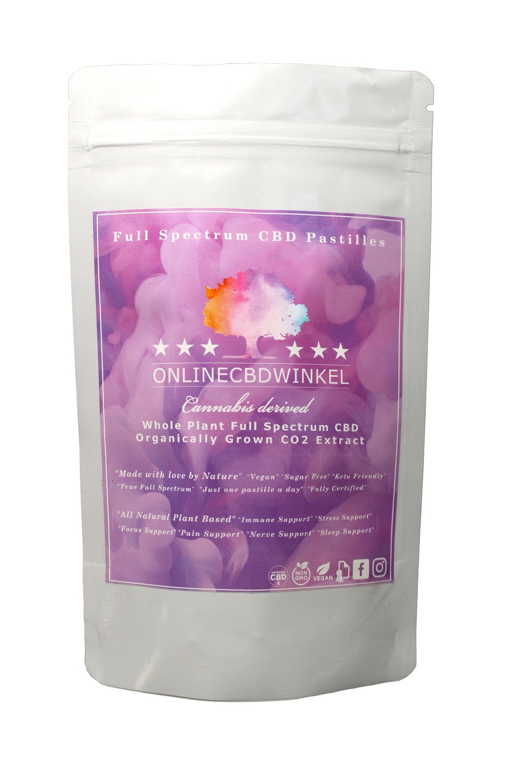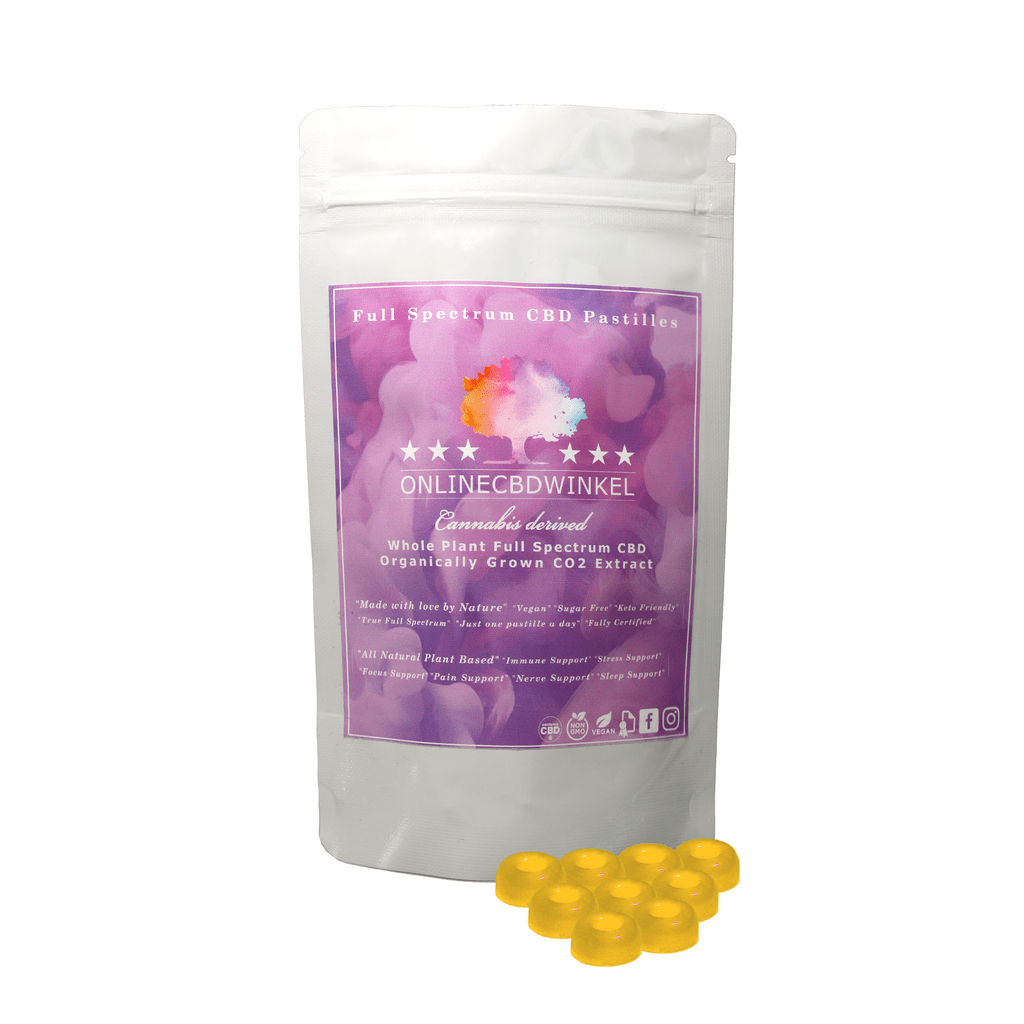 De CBD pastilles van OnlineCBDwinkel worden gemaakt met onze CBD concentraten. Deze heerlijke CBD snoepjes zijn 100% vegan, Keto-vriendelijk en suikervrij! Naast CBD bevatten deze CBD snoepjes natuurlijke etherische olie. Dit voegt niet alleen een heerlijke smaak toe maar het werkt ook perfect samen met de CBD en overige werkzame stoffen (entourage effect). De CBD pastilles bevatten 20mg CBD per stuk dus slechts 1 pastille is voldoende voor de hele dag.